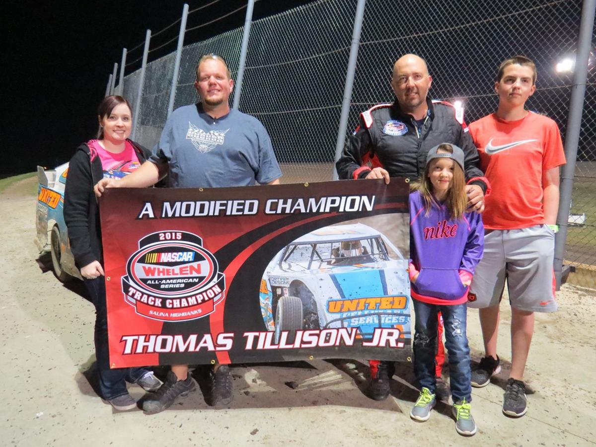 April 1, 2016- Salina Highbanks Track Champions Thomas Tillison Jr., Chris Hawkins, Jeff Metcalf, Jason Wayne and Justin Walters were all honored as with a banner that will be on display of the Grandstand side of the speedway! Like most champions in any sport banners are hung high and proud from rafters, fences and walls all a crossed this counrty. NASCAR believes that racers should be no different than athletes in other sports and have developed the idea of showcasing our NASCAR Home Track champions in the same way. These awesome looking banners will be up soon so everyone can appreciate these drivers hard work and efforts in our favorite sport.