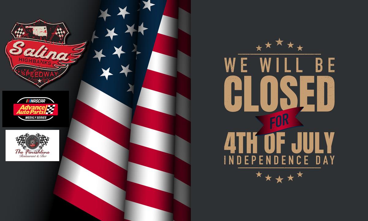 We wish to remind everyone that the Salina Highbanks Speedway and the Finishline Restaurant will be closed this week. The restaurant will reopen on Thursday July 10th at 5pm. We will resume racing on Saturday the 12th with the last sprint car race of the season featuring the Oil Capital Racing Series. Everyone have a safe and enjoyable Independence Day holiday and we will see you next week!
